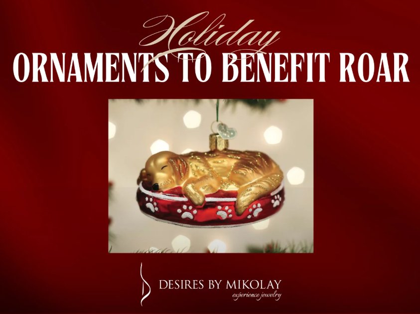 This winter, our friends at Desires by Mikolay (394 Main Street, Ridgefield, CT) are helping our animals through a special Holiday Ornament Fundraiser benefiting ROAR. Each beautiful ornament is filled with love and purpose — and 100% of the proceeds go directly toward caring for homeless pets right here in our community. Your purchase helps provide food, warmth, and medical care to animals waiting for their forever homes.
